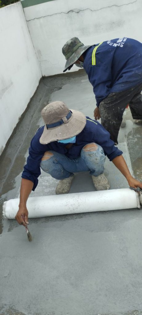 Sân thượng, sàn mái phải được vệ sinh sạch sẽ và trám trét liền lạc để tạo bề mặt bằng phẳng, chắc chắn, khô ráo, không đọng nước. Xử lý chống thấm đường nứt mặt bê tông bằng lưới vải thủy tinh.