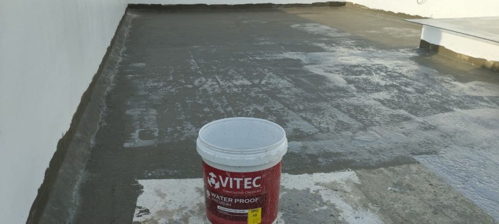 Làm sạch bề mặt bê tông không bám bụi, dầu mỡ, gỡ bỏ những lớp lót màng cũ hay nhựa đường. Nếu có nhựa đường hay những màng lót, cần phải loại bỏ bằng xịt khí nén hay những phương tiện cơ khí khác. Nếu bề mặt đã từng chống thấm bằng nhựa đường hay lớp lót nhựa đường nên tiến hành thử độ kết dính. Những mảng bê tông hỏng cần được sửa chữa bằng cách cắt vào tới phần bê tông tốt sau đó vá lại với Vitec RM-01 để bề mặt bê tông được sạch sẽ.